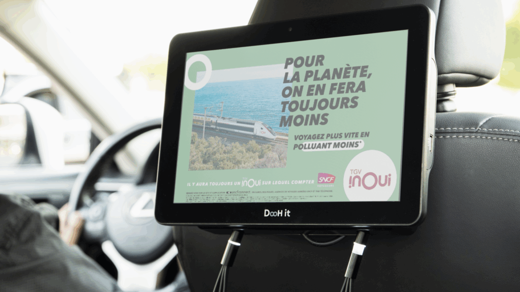 Par le biais de son média DigiCab, DooH it permet la diffusion de messages “green”, avec une campagne signée TGV INOUI.